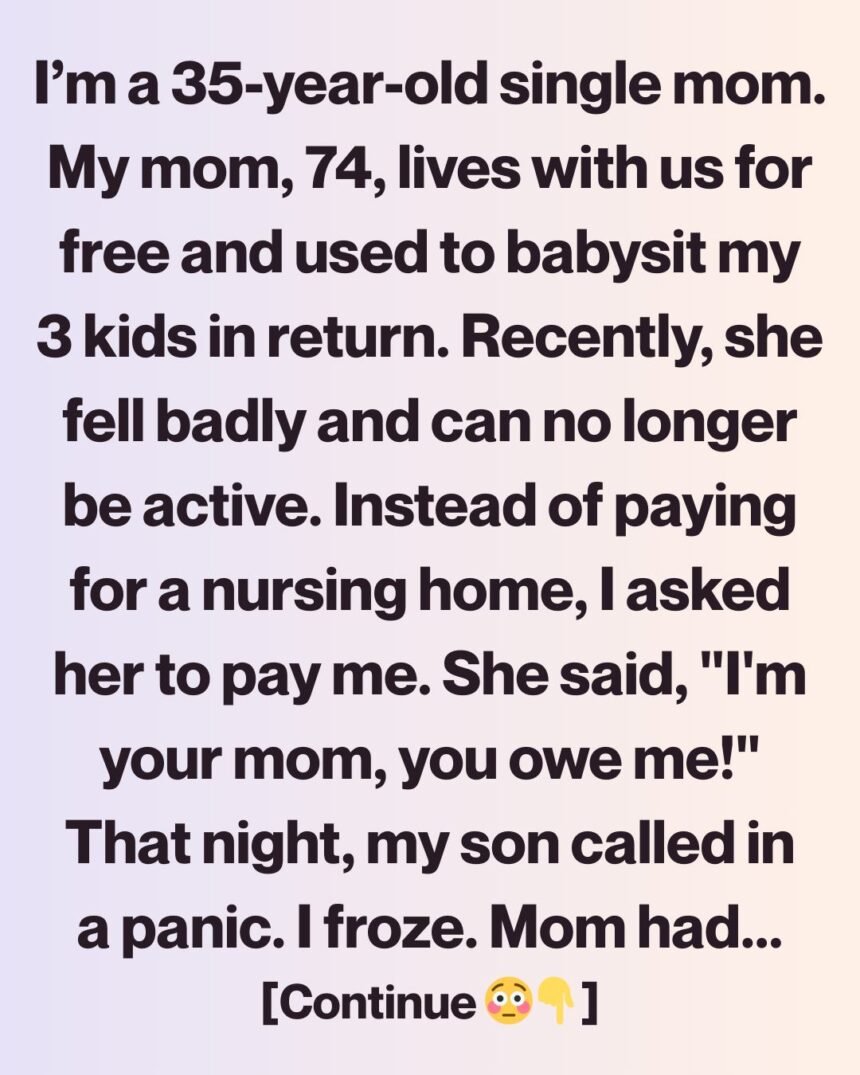 I gently suggested she contribute financially if I was going to become her full-time caregiver. I wasn’t trying to punish her—I was trying to survive. But she exploded, shouting, “I’m your mother—you owe me!”