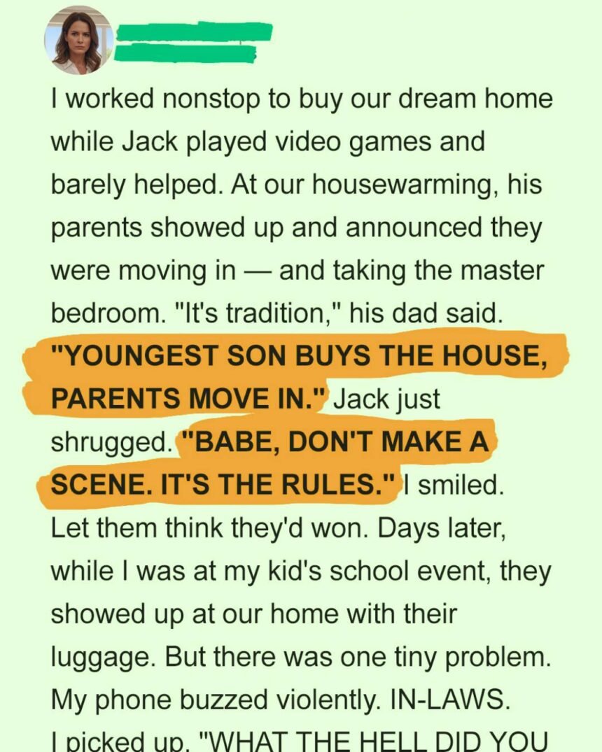 Jack’s parents stood on the doorstep. Uninvited. Diane brushed past me like she owned the place.