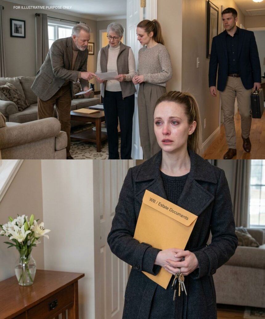 I had driven straight from the funeral home—no stops, no coffee, no moment to breathe. Grief sat beside me in the car like an invisible passenger. My husband, Gideon Pierce, was gone, and the world kept moving as if his death were just another ordinary day.