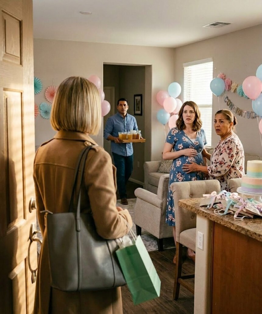 My own mother, Julia, stood by the kitchen island filling plastic cups with sparkling cider. There were gift bags, tissue paper, tiny boxes, and a cake with pastel frosting. Everything had been arranged carefully.