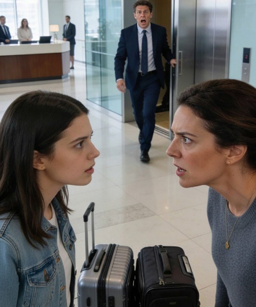 In the lobby—crowded, people clutching their morning coffee—I saw her near the elevators. I rolled his bags right to her, placed them at her feet, and let the silence speak.