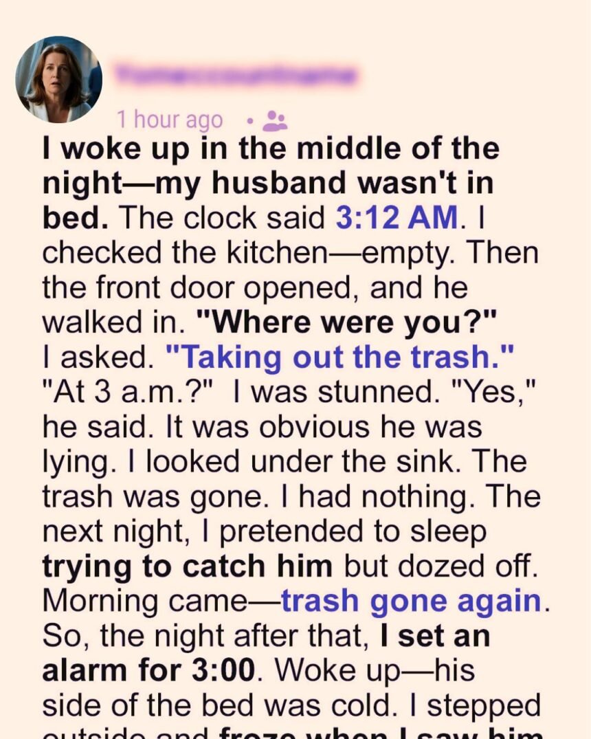 After twenty-two years of marriage, my husband suddenly began taking out the trash at three in the morning. He had never—not once—volunteered for that chore. So why now?
