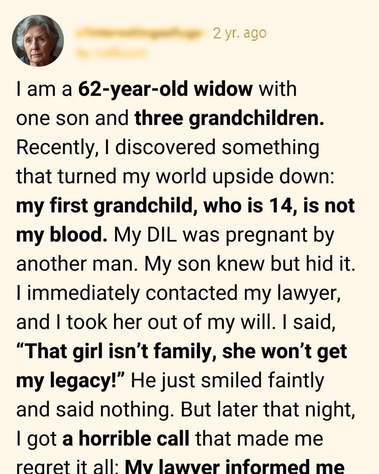 And just like that, my world cracked open. My first grandchild—the one I had adored for fourteen years—was not my blood.
