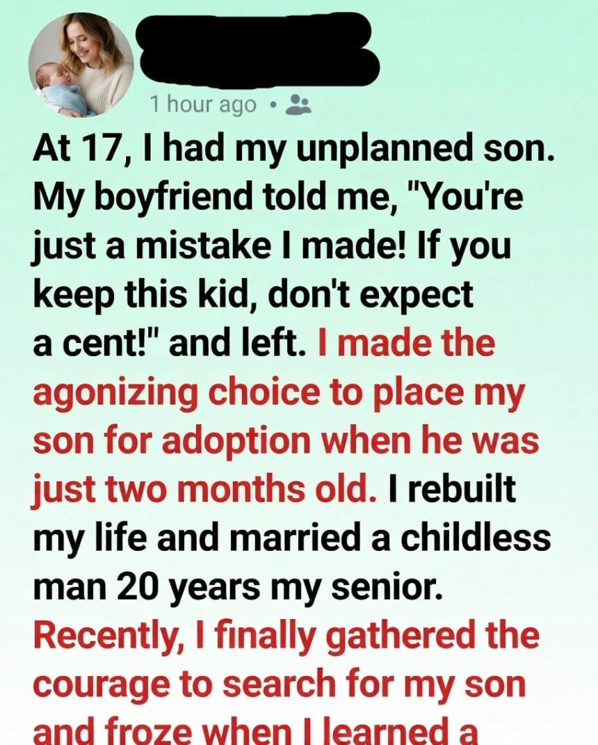 My son was born small, perfect, and impossibly real. I still remember his tiny fingers wrapping around mine, and how I cried because I already knew I couldn’t keep him. At just two months old, I signed the adoption papers, telling myself it was love—that I was giving him a better life than I could ever provide.