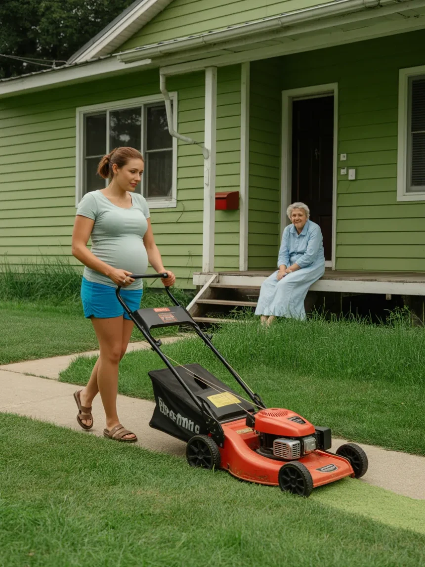 My name is Sarah Mitchell. I’m thirty-two years old, thirty-four weeks pregnant, and facing foreclosure. Yesterday, I mowed my 82-year-old neighbor’s lawn.