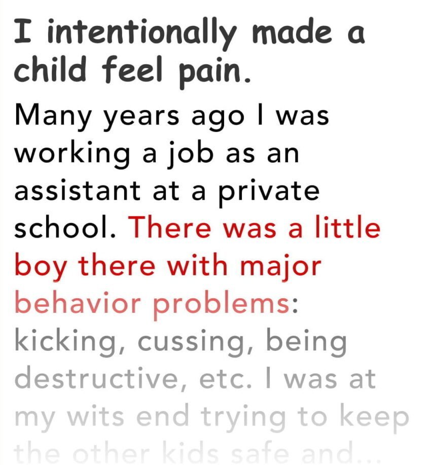 I was at my wits end trying to keep the other kids safe and the classroom peaceful. When he got out of control I used to hold his hand, but he’d yank and fight it like crazy.