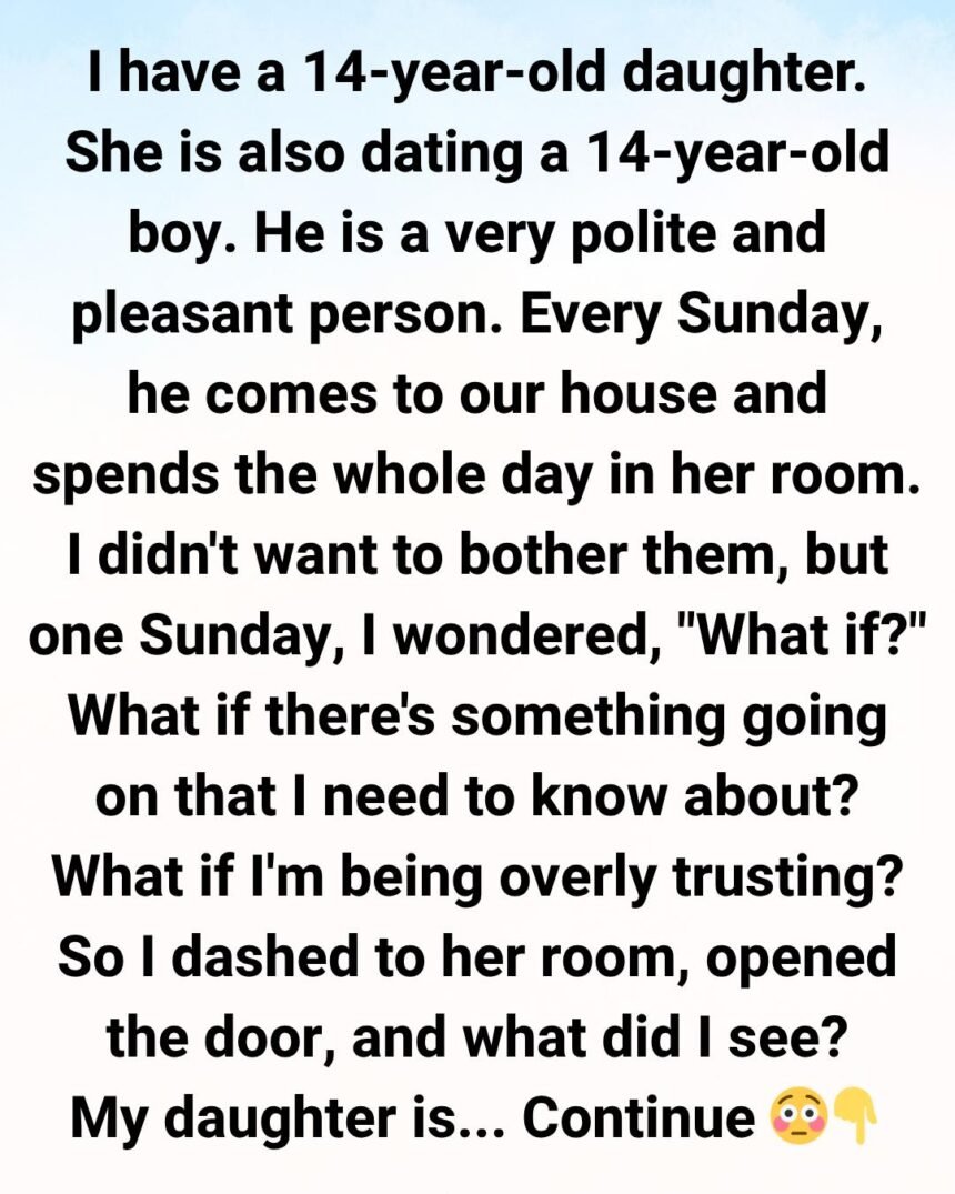 My daughter is fourteen, and her boyfriend—also fourteen—is polite, gentle, and surprisingly respectful for a teenager. He greets us every time he arrives, slips off his shoes at the door, and thanks me before he heads home. Every Sunday, he visits, and the two of them spend hours in her room.