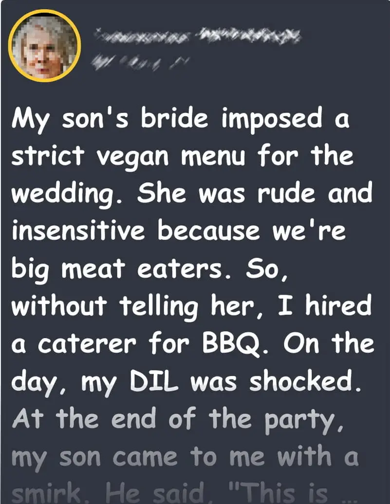 Nonetheless, Norma perceived her daughter-in-law’s choice of an exclusively vegan menu as inconsiderate, given Norma’s family’s fondness for meat.