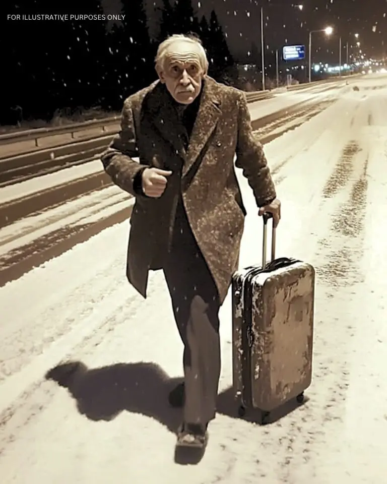 The road curved sharply, and that’s when I saw him. My headlights caught the figure of an old man walking on the shoulder of the highway. He was hunched over, carrying a battered suitcase, his steps slow and labored.