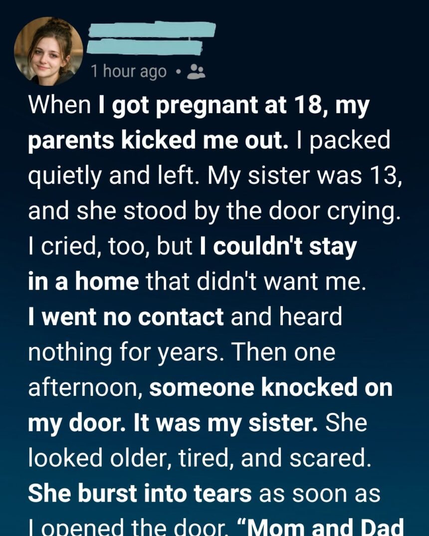 But something in my chest tightened, like a warning. When I opened the door, my sister was standing there. For a second, I didn’t recognize her.