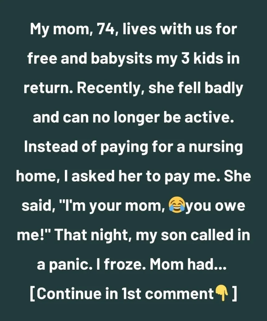 That same evening, my oldest son called me in a panic. I was stunned. My mother had taken matters into her own hands—she’d called a nursing home, and they were coming to get her.