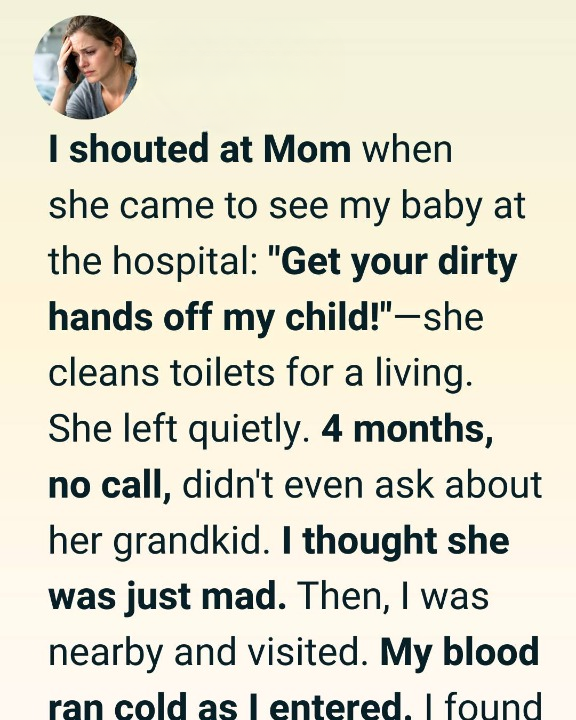I had spent years pretending it didn’t bother me, but in that spotless hospital room, holding my newborn daughter, all the embarrassment and resentment I’d buried spilled out in one cruel sentence. After that day, she disappeared from my life. Four months went by with no calls, no texts, no questions about her grandchild.