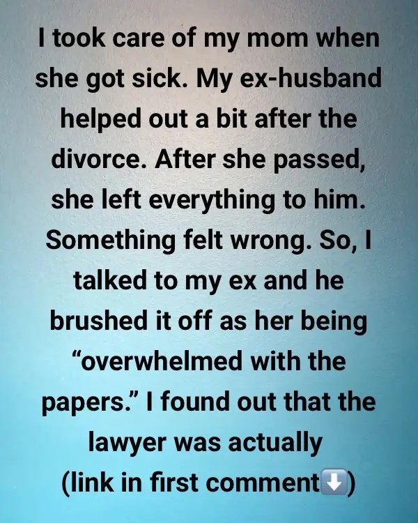 We were still married when she received her diagnosis, and to be honest, she adored him. Even after our divorce (which happened after I discovered him texting another woman), he still came around occasionally, helping with repairs and keeping her company. After her passing a few months ago, I was devastated until I learned that she had left everything to him.”