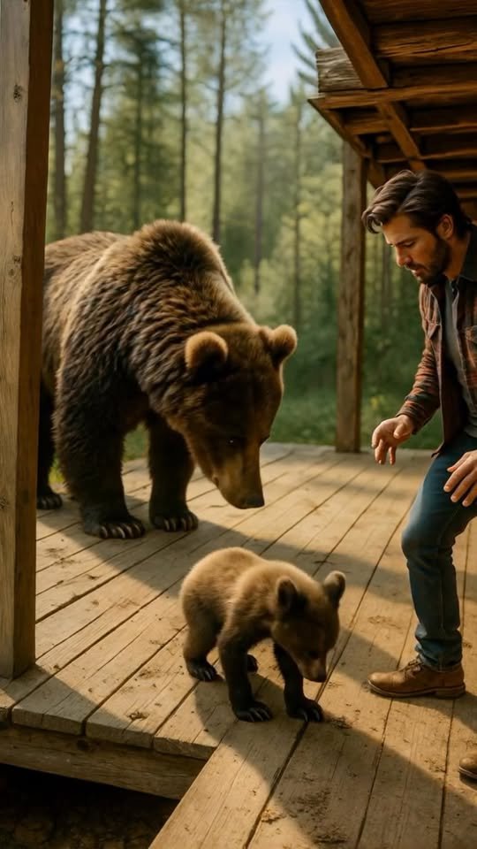 I stepped outside and saw a huge bear standing on the porch, holding a cub in its jaws: As I stared at them in shock, the mother bear gently set the cub down on the ground — and then did something completely unexpected