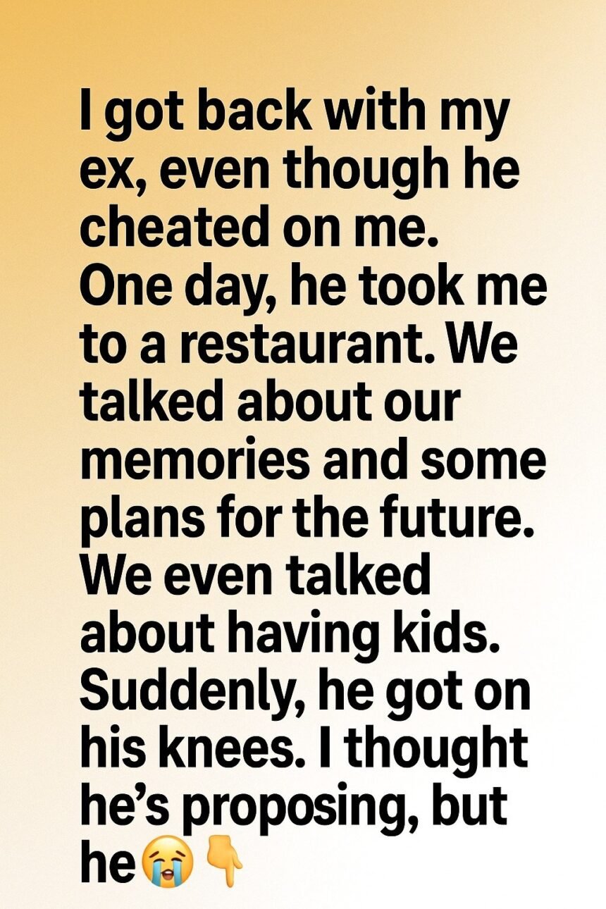 I got back with my ex, even though he cheated on me. A part of me believed that people could change, and I wanted to believe love deserved a second chance. One evening, he took me to a cozy restaurant where soft music played in the background.