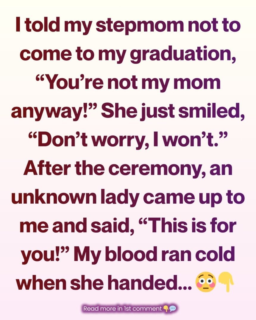 I told myself I didn’t need her there. But when my name was called and I walked across the stage, receiving my diploma, I felt a sudden ache—an awareness of someone missing. Someone who had helped pack my lunches, sat through parent-teacher meetings, and left encouraging notes on the fridge before big exams.
