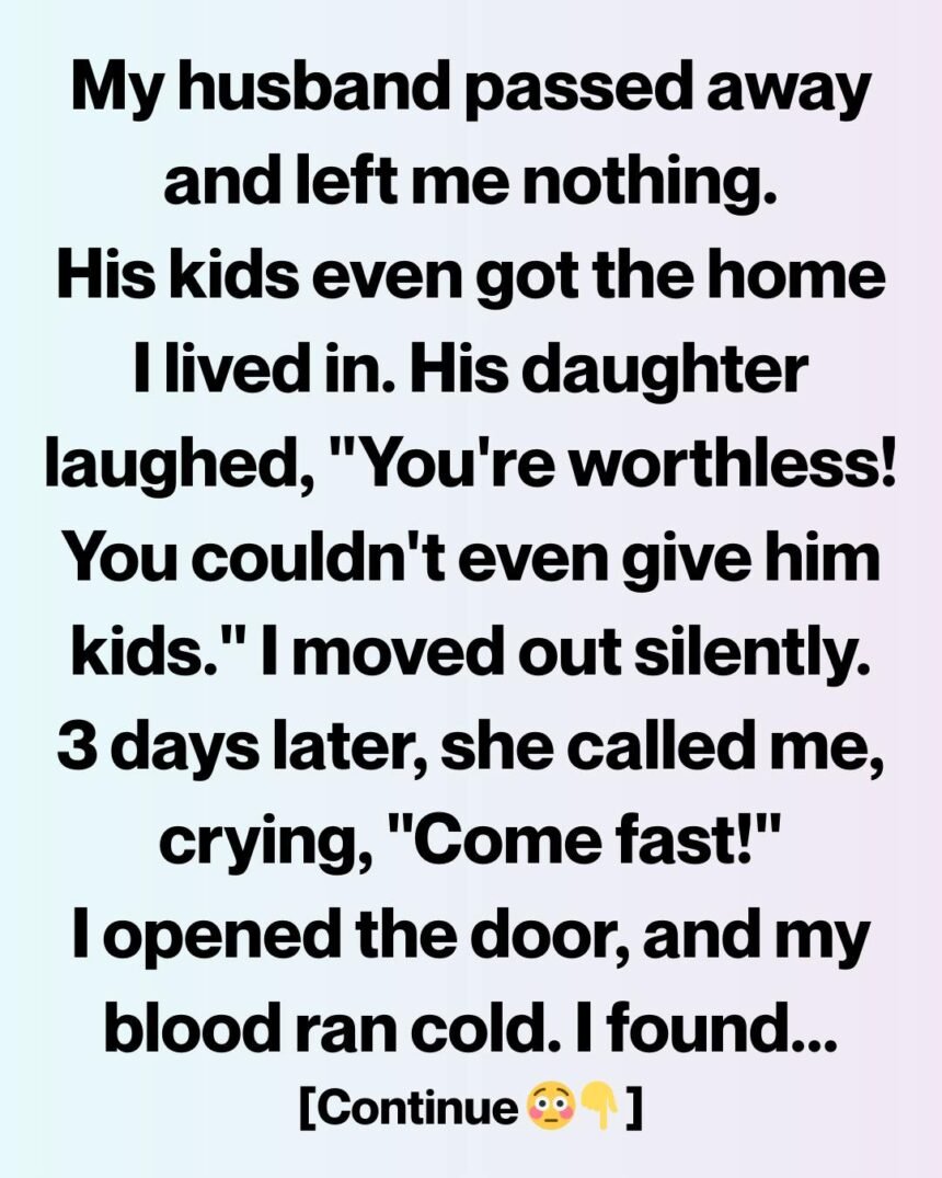 My husband died and left me nothing. Not a dollar, not a keepsake, not even the home I had lived in for twelve years. His children swooped in like vultures before the funeral flowers had wilted.
