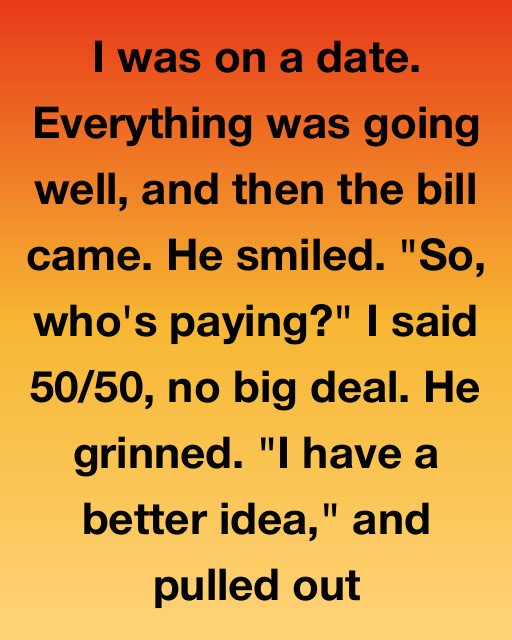 I reached for my purse and said 50/50, no big deal. It felt like the fairest way to handle things, especially since we’d both ordered roughly the same amount of food and wine. He grinned.