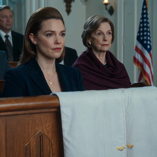 The pews are polished. The air is thick with the smell of lilies and wood cleaner, and sunlight from stained glass paints the room in borrowed color, but her eyes aren’t on the coffin. They’re locked on a woman she’s never seen before, crying harder than any widow should have to.