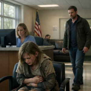 A small figure shuffled toward the reception desk. Her name was Sophie Miller. She was eight years old, painfully thin, her clothes dirty and worn, her face pale as paper.