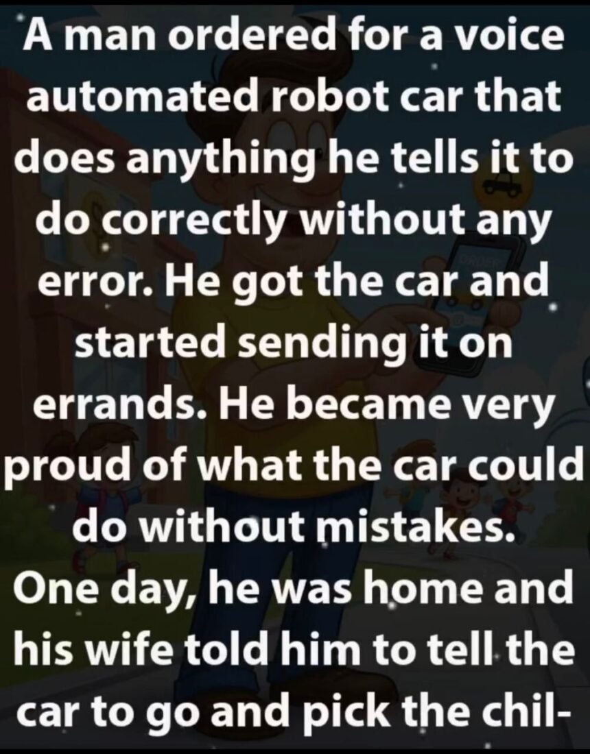 One day, he was home and his wife told him to tell the car to go and pick the children from school as she was very tired. The man agreed and said to the car… “Car, go and bring my children from school.”