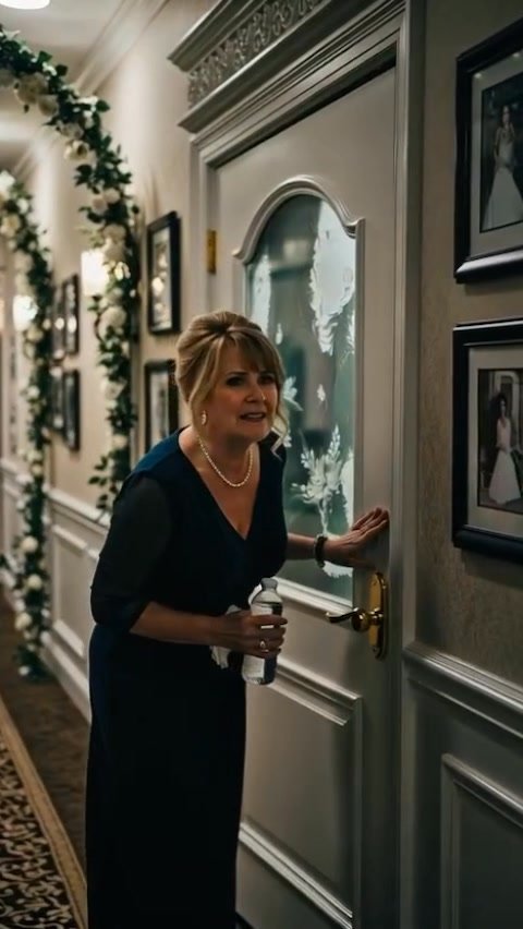 The voice stopped me cold. I hadn’t even knocked yet, just stood outside the bridal suite with a bottle of water in one hand and a folded napkin in the other. I wasn’t meant to hear anything.