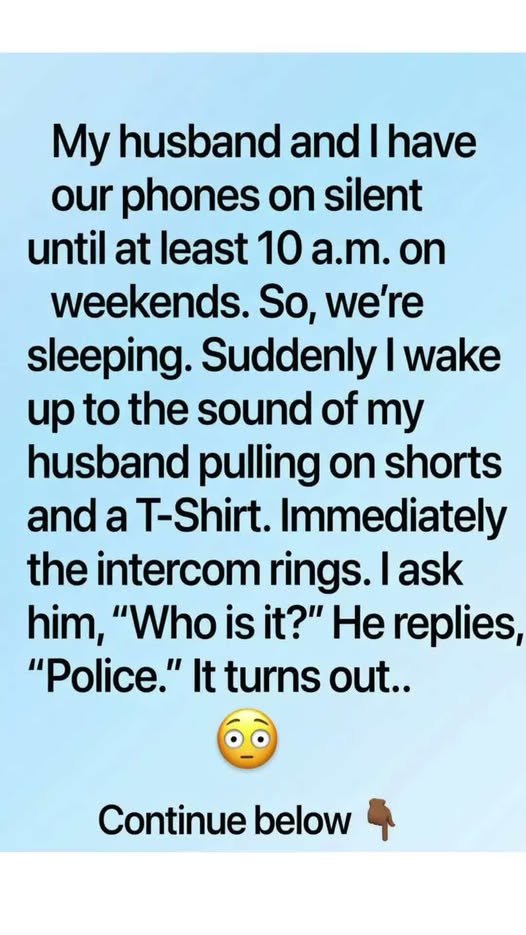 My husband and I usually keep our phones on silent on weekends until 10 a.m. so we can sleep in. One Saturday morning, I woke up to him suddenly getting dressed, and then the intercom rang loudly.