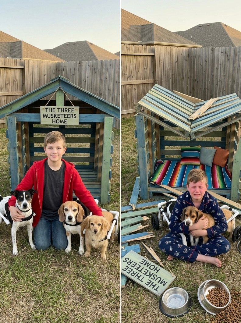 Ethan didn’t respond immediately. He just stared at the dogs, as if he were trying to understand something bigger than what he’d just heard. Then my son, with a heart of gold, looked up at me.
