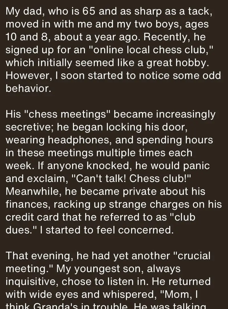 Before I get into the details about my father’s enigmatic “chess club” and what my son overheard, let me set the stage.