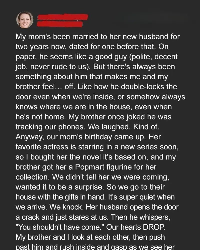 We thought we were surprising Mom for her 53rd birthday when we showed up unannounced with gifts. But when her husband, Rick, opened the door and whispered, “You shouldn’t have come,” fear ran through me. For years, I’d been suspicious of him.