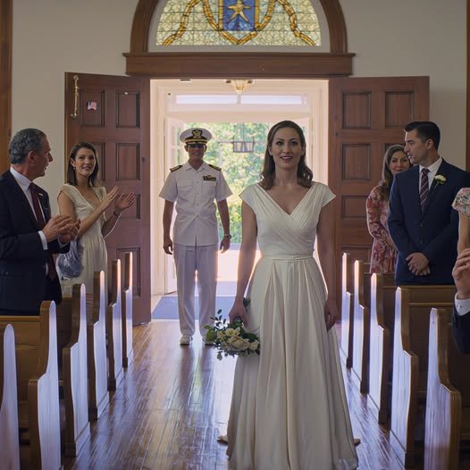 And then the officiant’s voice, steady and ceremonial, amplified just enough to roll through the chapel like a low drum: “Everyone, please rise. The admiral is present.”