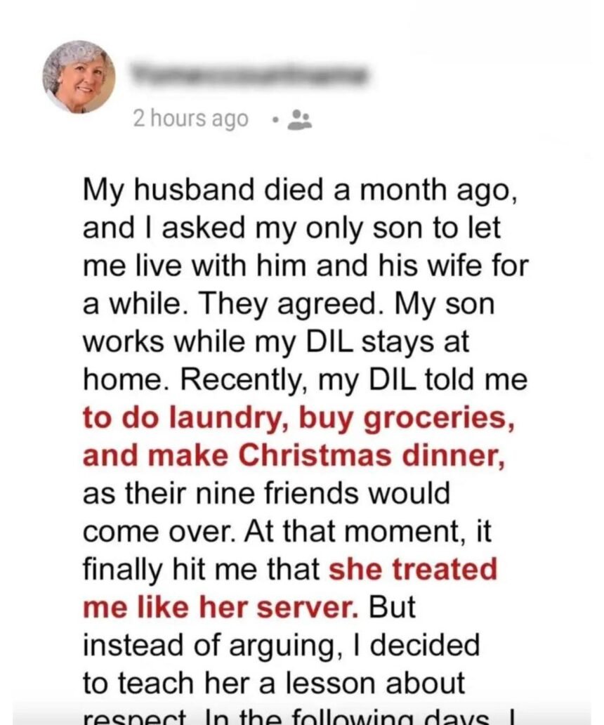 She brought me tea without asking. She cooked dinner every night and wouldn’t let me lift a finger. “You’ve been through enough, Lucy,” she would say.