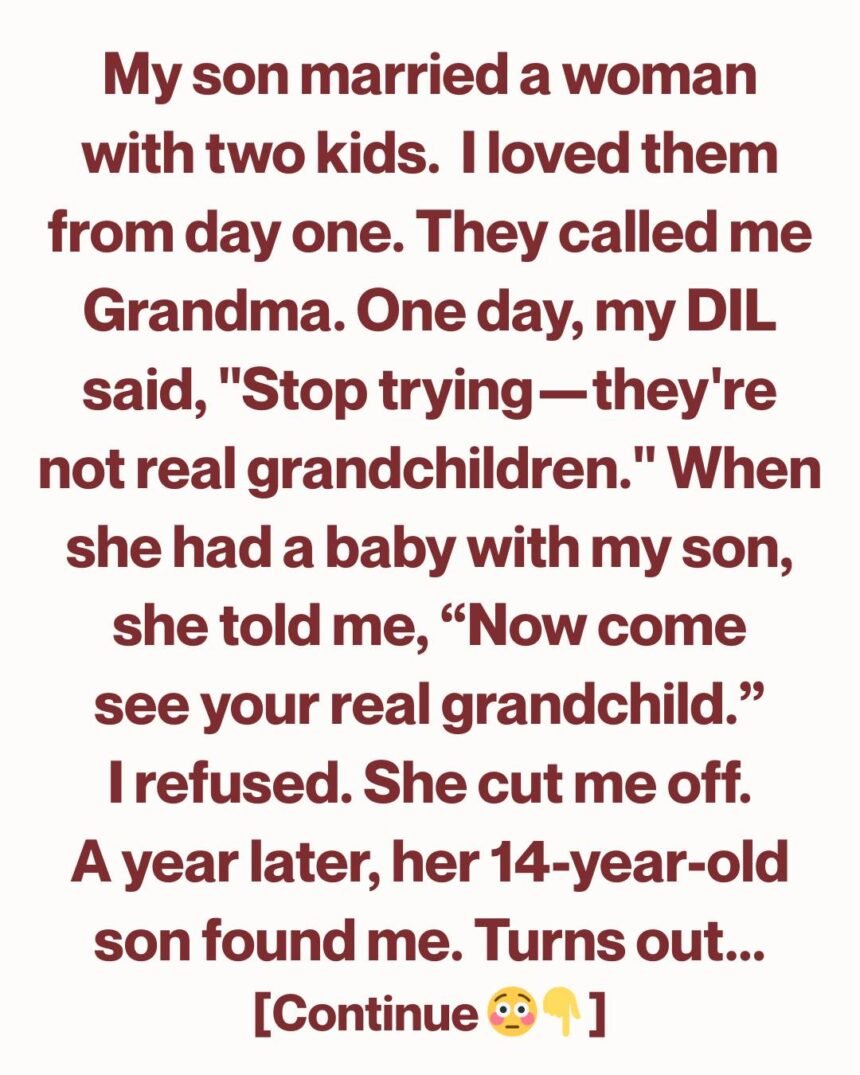 My son married a woman who already had two children from her first marriage. From the moment I met those kids—tiny hands, shy smiles, eyes searching for a safe place—I loved them as fiercely as if they had come from my own blood. They called me Grandma by the second visit, and I made it my quiet mission to ensure they never, not for a single second, felt like outsiders in our family.