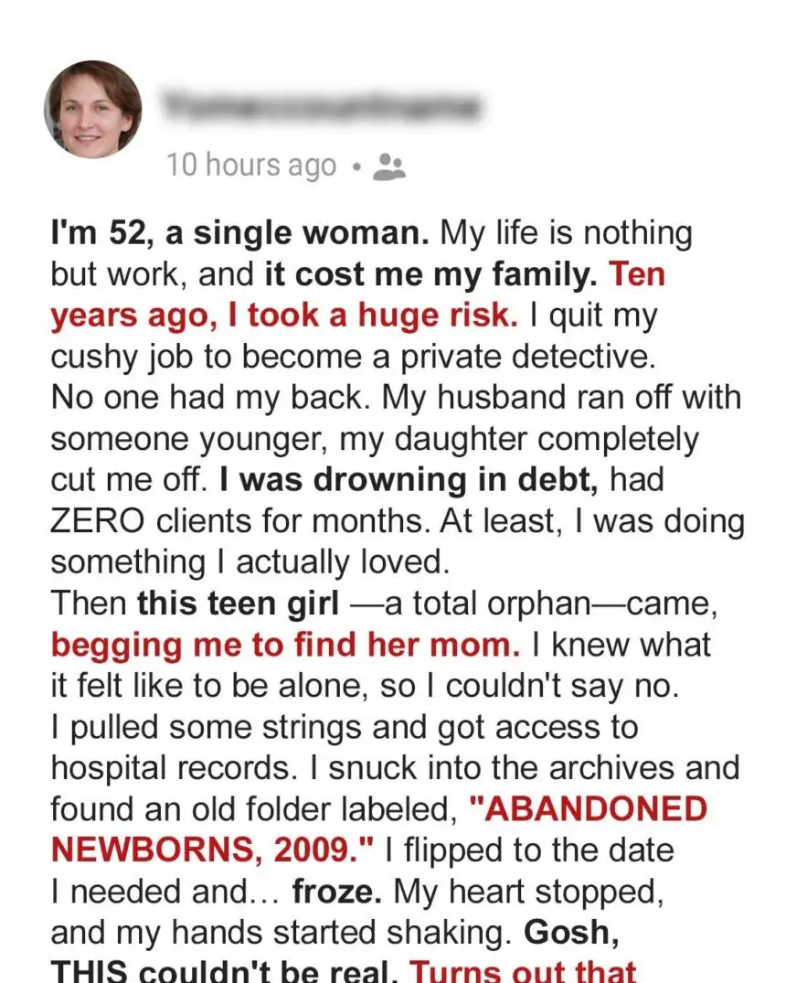 No clients, no money, just regrets. But then a teenage girl walked into my office, searching for her mother—and her case changed everything.