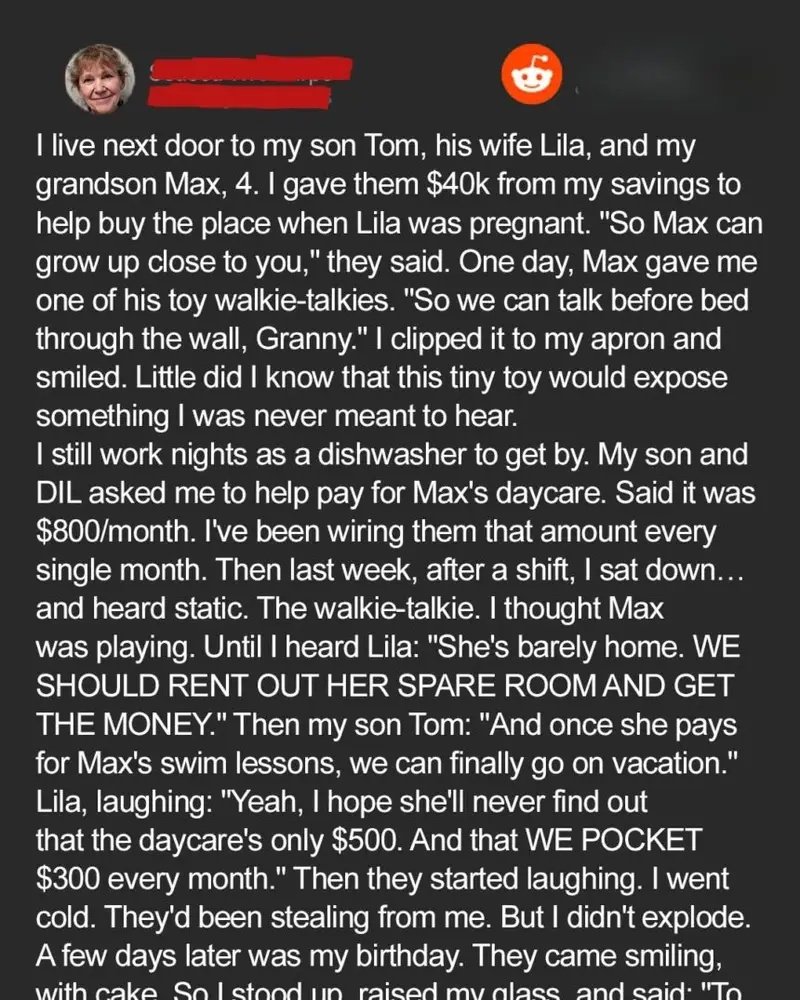I helped them buy that place five years ago. Gave them $40,000 from my retirement savings without blinking. Because I thought keeping family close was worth more than any number on a bank statement.