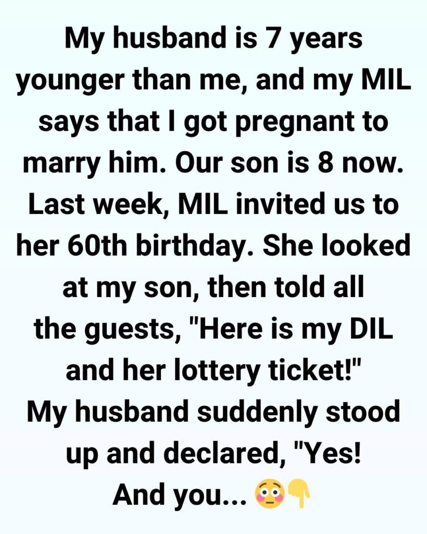 My husband is 7 years younger than me, and my MIL claims that I got pregnant to marry him. Our son is 8 old now. Last week, MIL invited us to her 60th birthday.