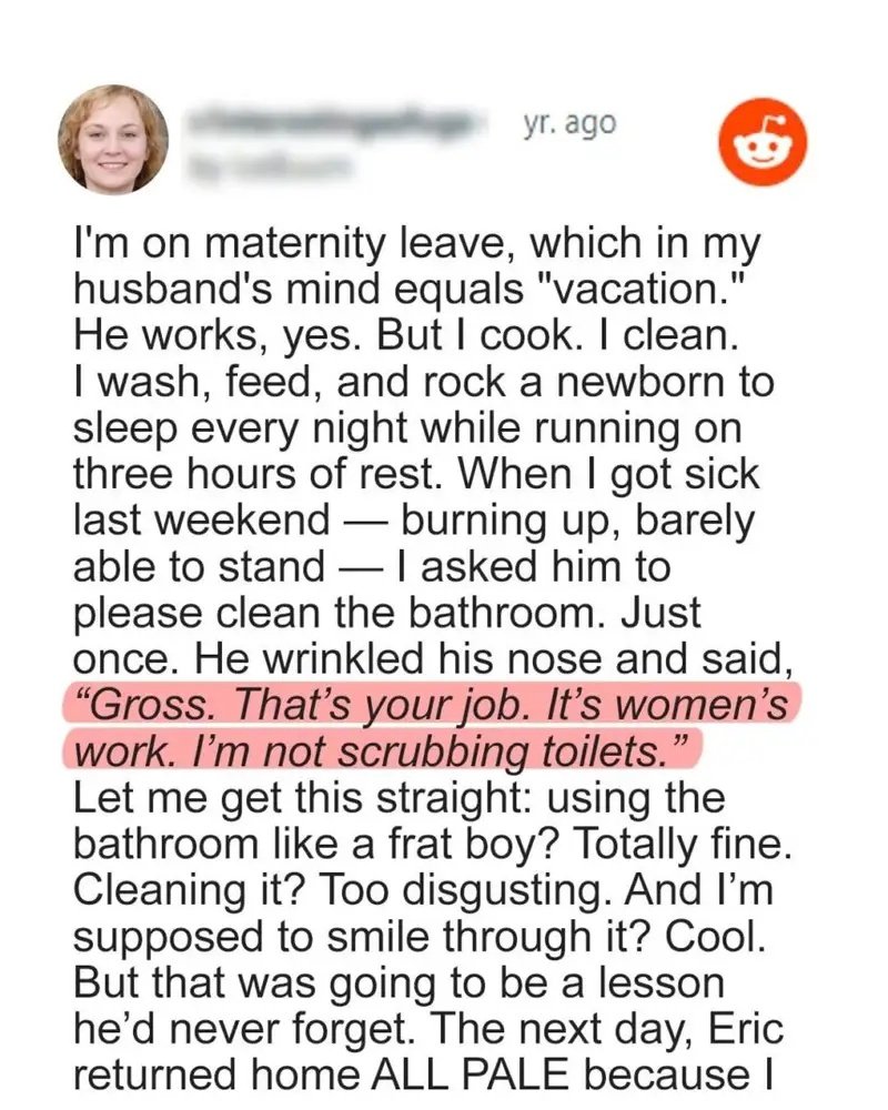 When my husband told me scrubbing toilets was “women’s work,” I knew exactly what to do. What happened next involved his precious Xbox, my cousin’s cleaning skills, and a few words that turned his world upside down. The look on his face was absolutely priceless.