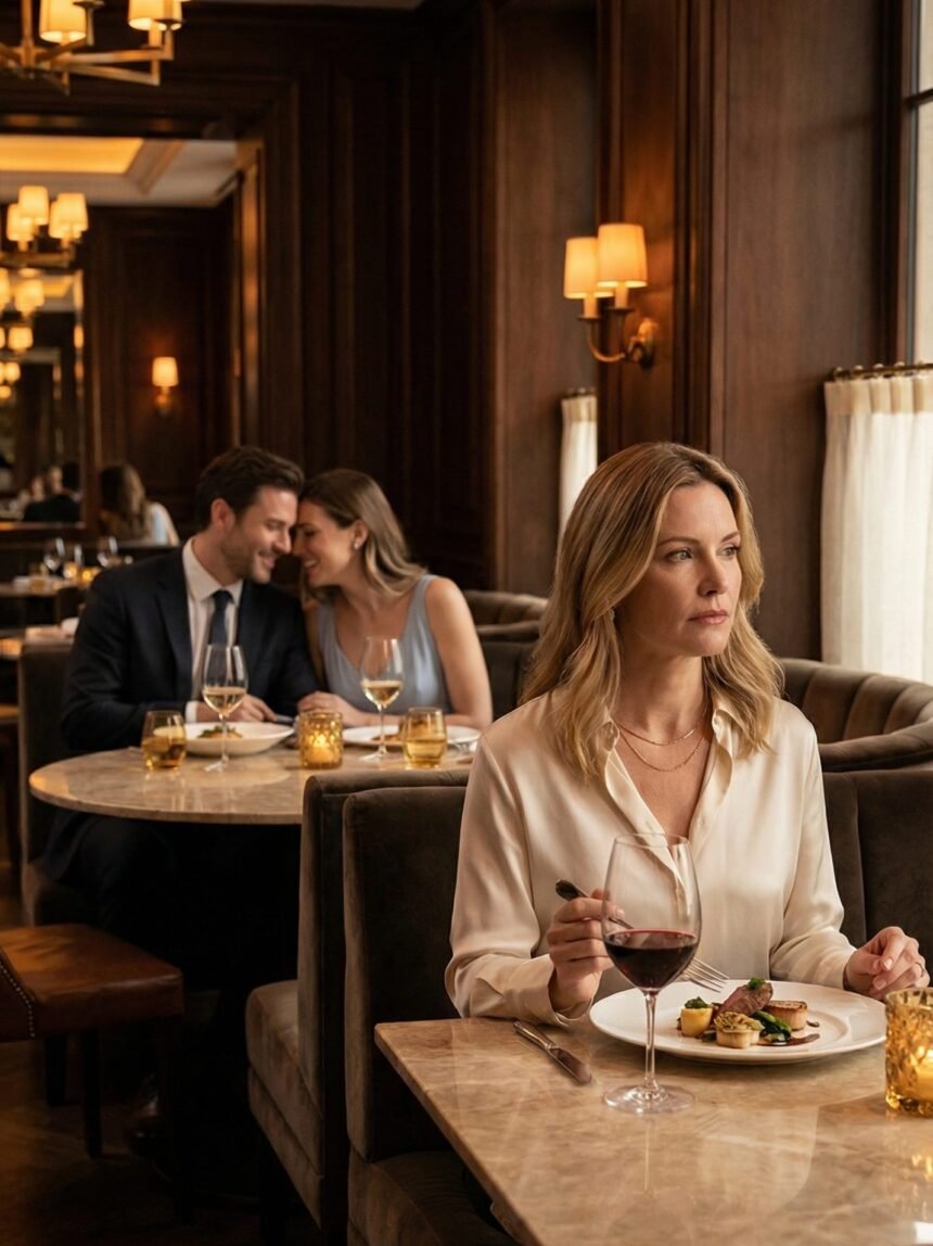Christopher was seated only two tables away in a semi-private corner of the restaurant, partially shielded by a decorative brass divider and a row of low amber lamps, but not concealed enough to escape me once I knew where to look, and there he was, one arm curved possessively around the back of a blonde woman’s neck, kissing her slowly, with a composure so complete that what struck me first was not guilt, but confidence.