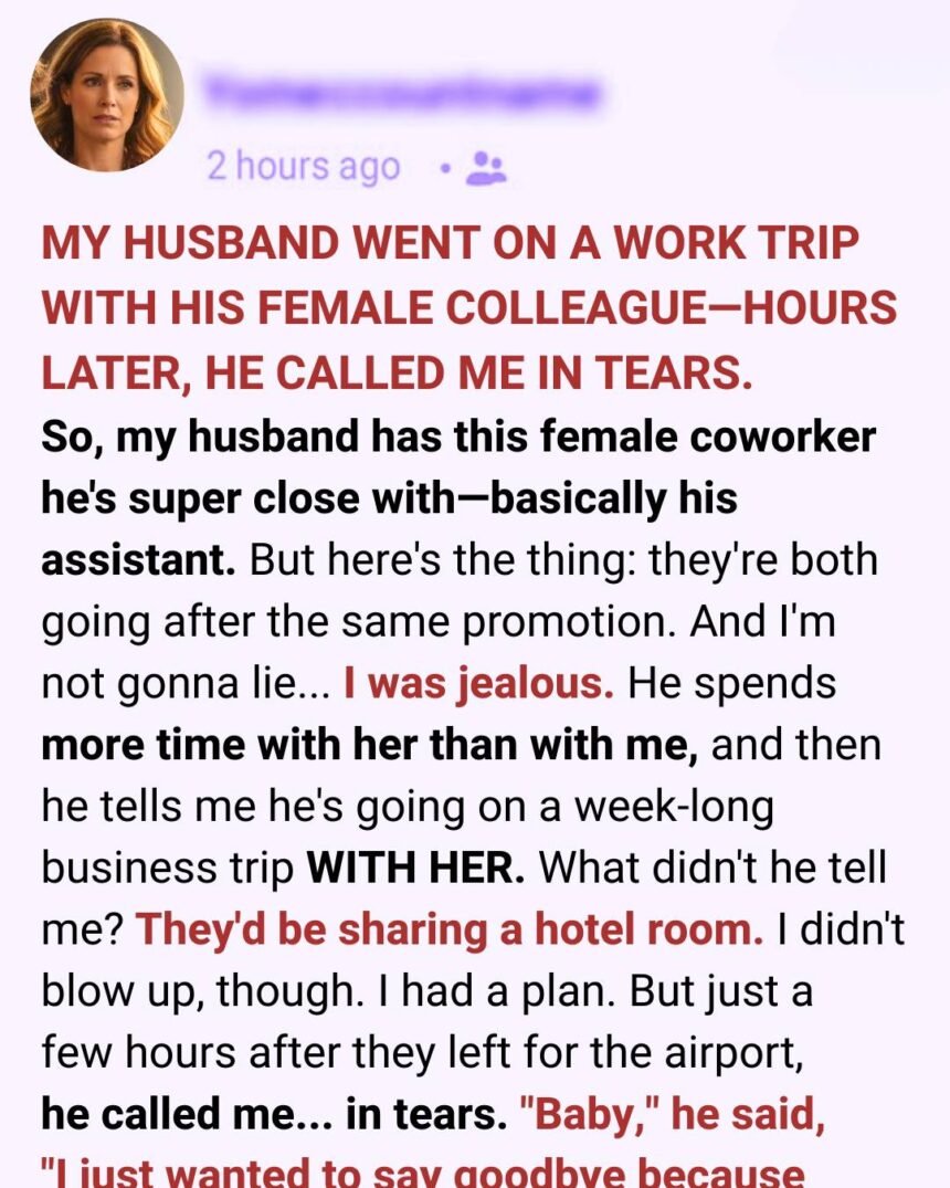 “Quick drinks” after work. Conferences they “had” to attend together. So when he came home one evening and casually mentioned he’d be going on a four-day business trip with Lucy, that familiar sting rose in my gut.