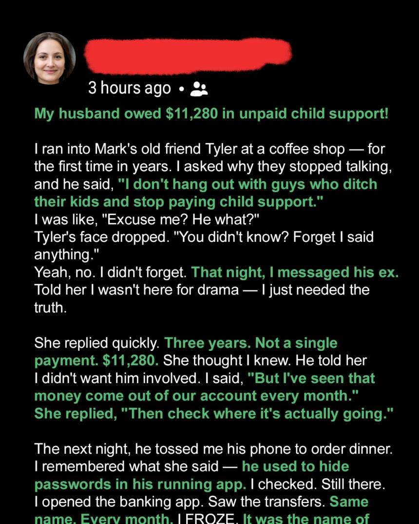 Then a run-in with his former best friend revealed a truth I couldn’t ignore. I reached out to Sarah, bracing for hostility, but found a tired, kind woman with proof—over $11,000 in unpaid child support. The shock deepened when I realized Mark had been withdrawing that exact amount from our joint account each month.