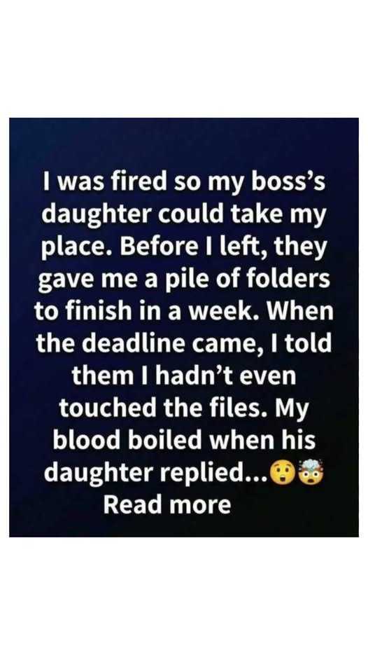 Unexpectedly, the manager’s daughter stepped forward and explained that she had already finished the work herself. After offering a brief farewell, he walked out of the office for the last time. Not long afterward, he secured a new position at a company that truly appreciated his skills and dedication.