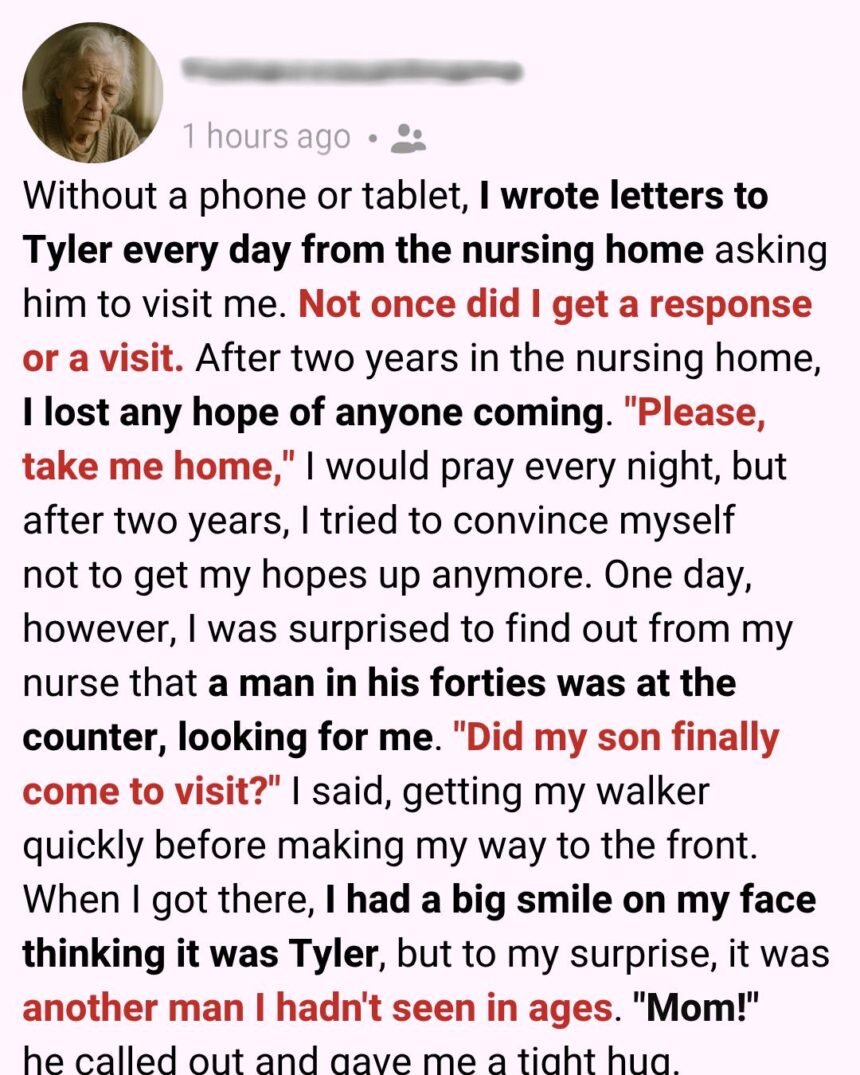 When my son persuaded me to move into a nursing home, I began writing him letters every single day, telling him how much I missed him. He never replied to a single one—until a stranger showed up one day, explained everything, and came to take me home. When I turned 81, I was diagnosed with osteoporosis.