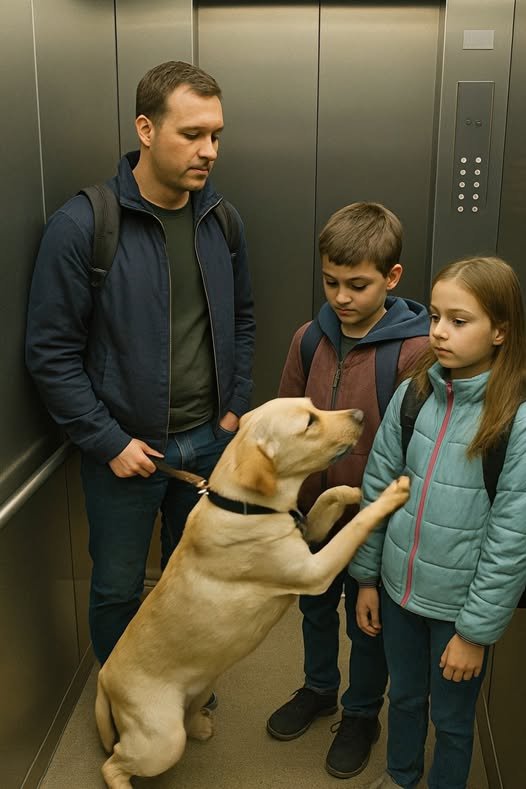 The labrador began barking — loudly, sharply, anxiously. The man immediately pulled the leash, crouched beside the dog, started petting it, and said everything was okay. “Kids, don’t be afraid, the dog doesn’t bite.”