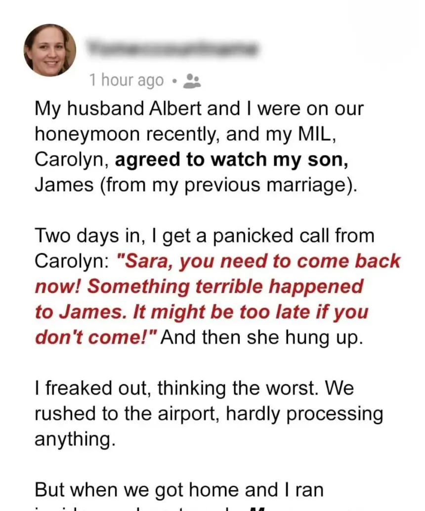 My MIL Called Me Back Home Immediately, Saying Something Terrible Had Happened to My Son—but What I Found Made My Jaw Drop
