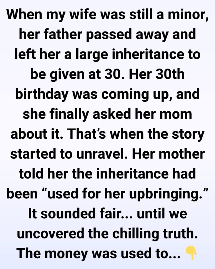 When my wife was still a minor, her father passed away and left her a sizeable inheritance — money meant to be released when she turned thirty. As her thirtieth birthday approached, she finally asked her mother about it. That was when everything began to unravel.