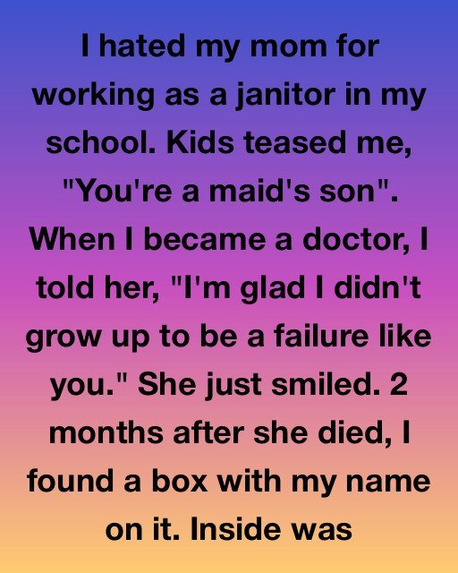 I hated my mom for working as a janitor in my school. Kids teased me, “You’re a maid’s son.” Every day, seeing her pushing that heavy cleaning cart down the hallway felt like a fresh wave of humiliation washing over me. I tried everything to avoid her, pretending I didn’t see her when she waved from across the cafeteria, or quickly turning down a different hall if I spotted her in the distance.