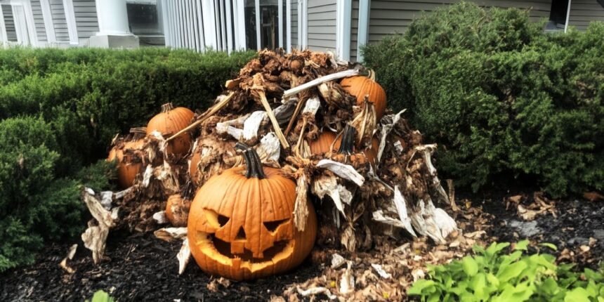There, right in the middle of my yard, was a heap of rotting pumpkins, dead cornstalks, and broken skeleton pieces. Flies buzzed around, and the smell was unbearable.