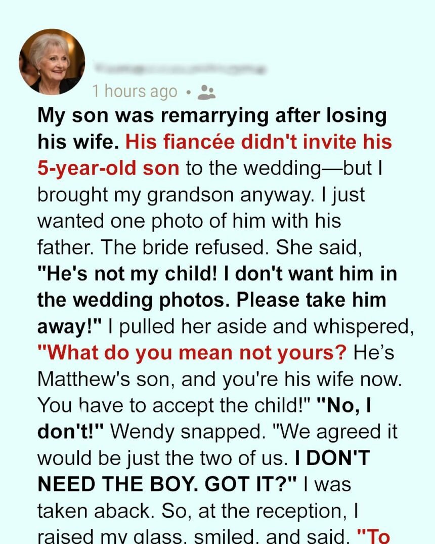 The room grew silent. Alex walked up to Wendy with his little bouquet and said softly, “You look pretty. I’m happy you’re my new mommy.”
