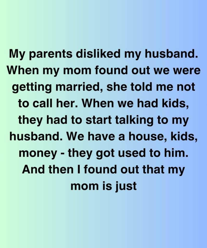 Parents disliked my hubby. After learning we were getting married, my mom told me not to call her. They had to talk to my spouse after we had kids.
