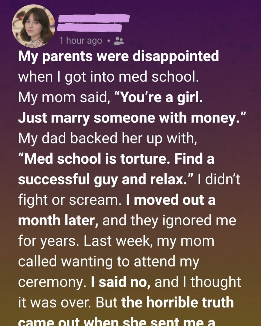 All I wanted—more than anything—was to share that moment with my parents. I thought it would be our victory. The years of studying, the late nights in high school, the scholarships, the pressure—it all felt like it had been building toward this.